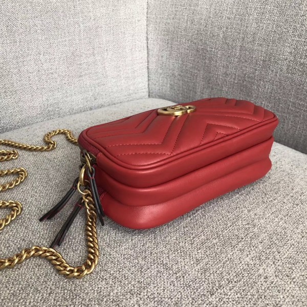 The GG Marmont mini chain bag has a softly structured slim shape and three zippered compartments. Made in matelassé leather with a chevron design and metal Double G detail.