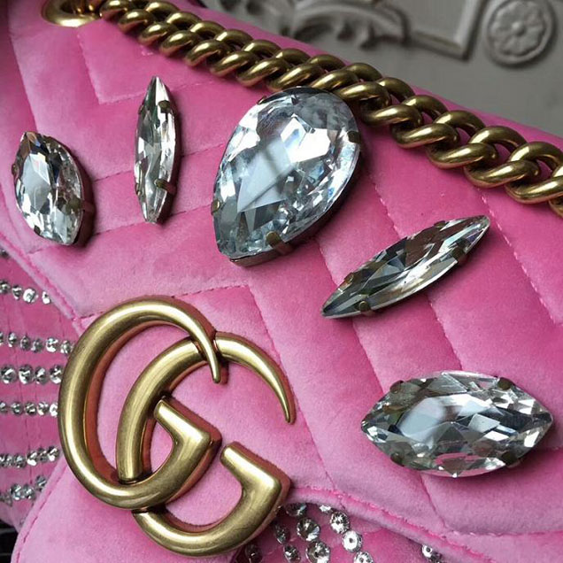 Gucci GG Marmont Velvet Small Shoulder Bag With Crystals 443497 Pink 2018 Collection