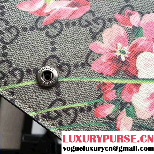 A compact wallet with a chain shoulder strap in our Blooms print GG Supreme canvas.