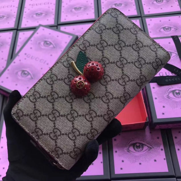 Gucci GG Supreme Zip Around Wallet With Cherries 476049 2018