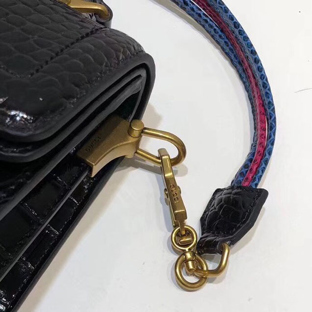 Gucci Lilith Bamboo Top Handle Bag with Printed Snakeskin Detail Medium Shoulder Bag Fall Winter 2016 Collection Black