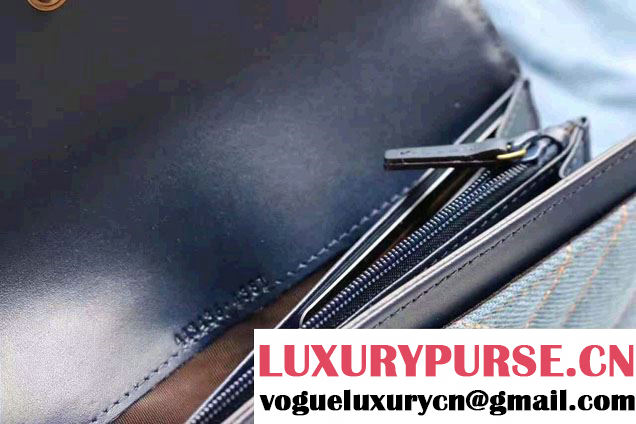 Gucci Metal Logo GG Marmont Embroidered Floral Cloth Fabric Continental Wallet 443436 Blue