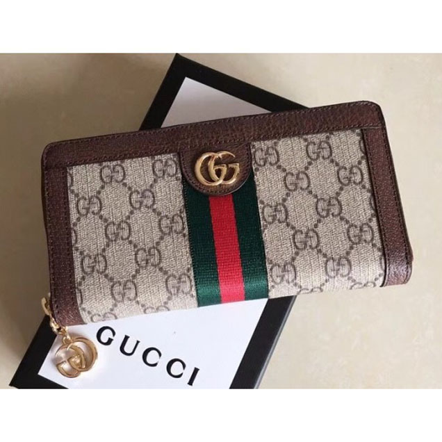 Gucci Ophidia GG Web Zip Around Wallet 523154 Brown 2018