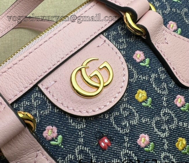 Gucci Ophidia Small GG Denim Tote Bag with Floral Embroidery? and Love Motif 547551 Pink/Blue 2022