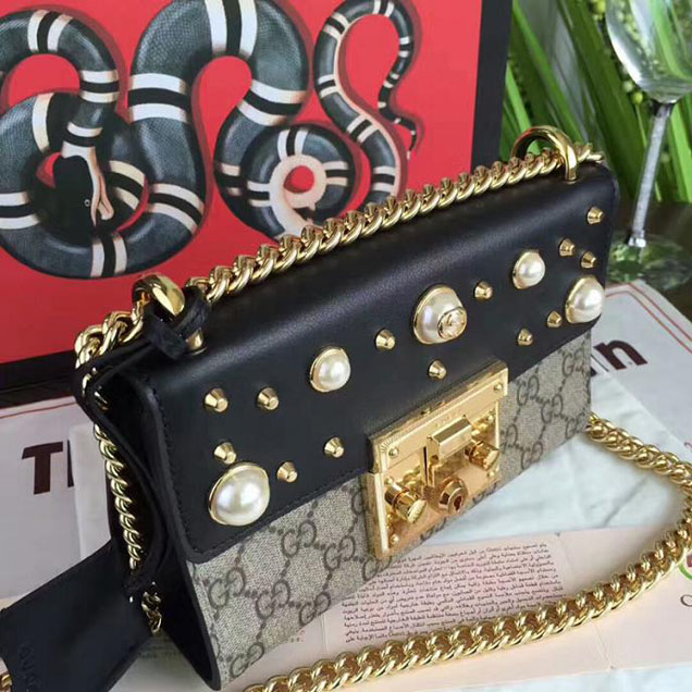 Gucci Padlock Studded GG Supreme Shoulder Bag 432182 Black