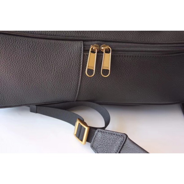 The backpack continues to be an important silhouette in the world of Gucci, offered in a variety of sizes and interpretations. Here, textured leather is juxtaposed with a technical canvas back, fearing the Gucci logo on the front inspired by vintage prints from the eighties.