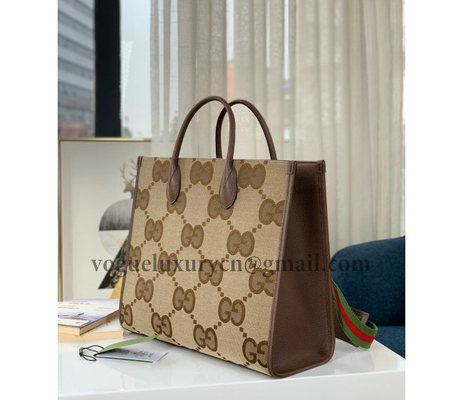 The GG motif appears in a maximalist, jumbo-sized version atop this tote bag. The House's logo symbols continue to be reimagined each season, celebrated in different ways. Pieces with versatile ways to wear and style embrace each person who is part of the House’s individual spirit.