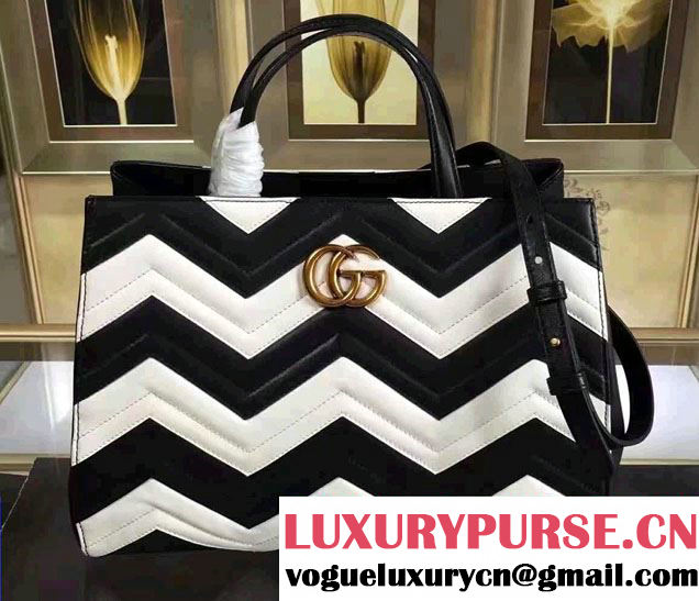 Gucci GG Marmont Chevron Quilted Top Handle 26cm Bag with Chain Strap Calfskin Leather 498110 Spring Summer 2018 Collection White