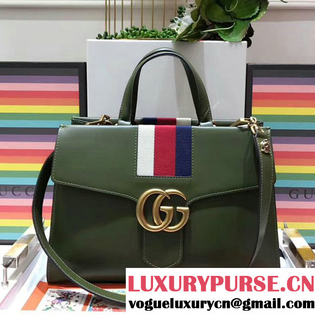 Gucci Web GG Marmont Small Top Handle Bag 476470 Green