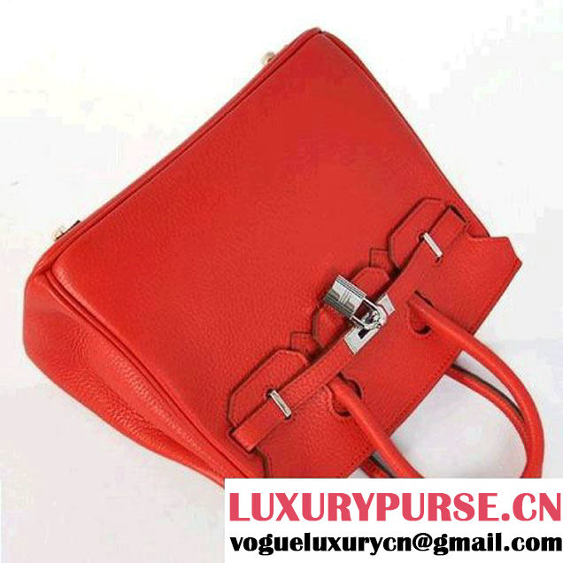 Hermes Birkin 25CM Tote Bags Togo Leather Red Silver