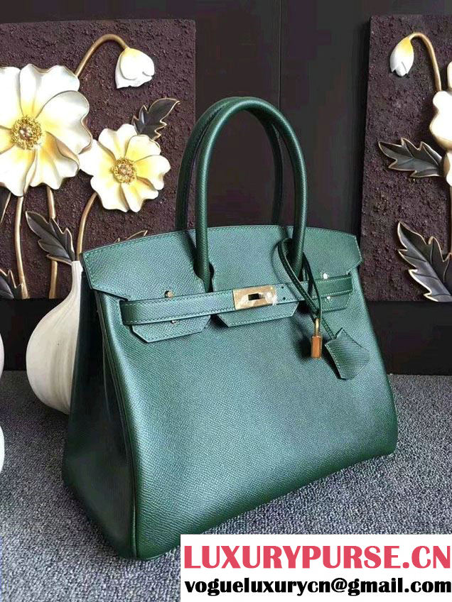 Hermes Birkin 30/35 Bag In Original Epsom Leather With Gold/Silver Hardware Dark Green
