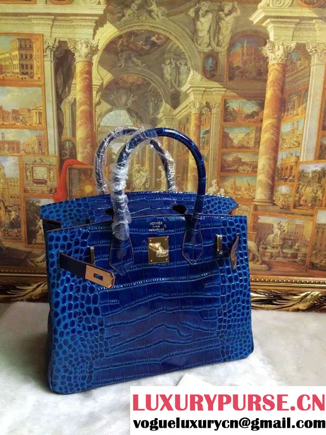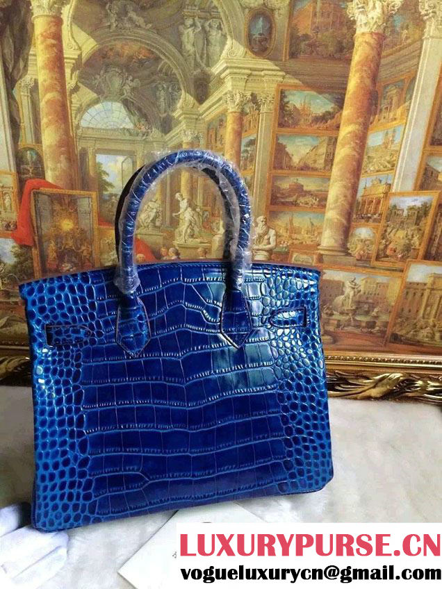 / Hermes Birkin 30/35 Crocodile Pattern Leather Bag Blue