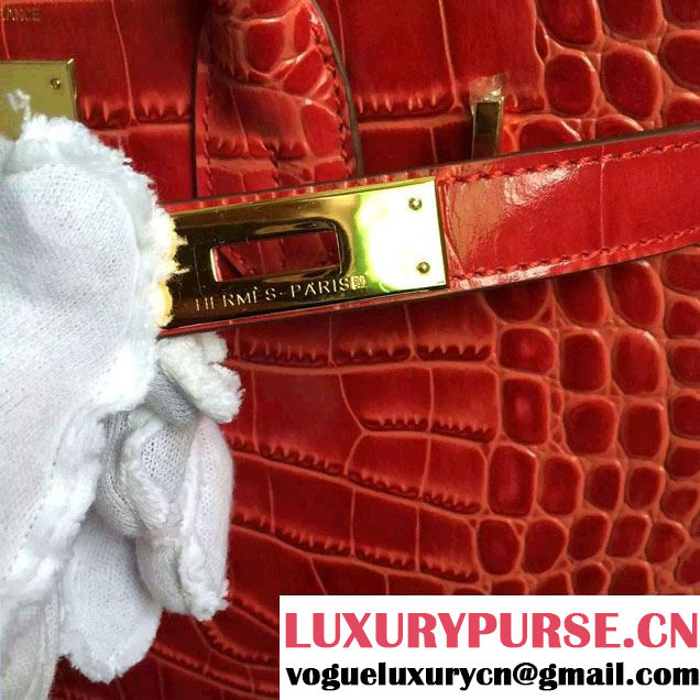 / Hermes Birkin 30/35 Crocodile Pattern Leather Bag Red