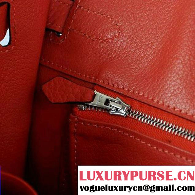 / Hermes Birkin 30CM Tote Bags Pompadour Grain Leather Silver