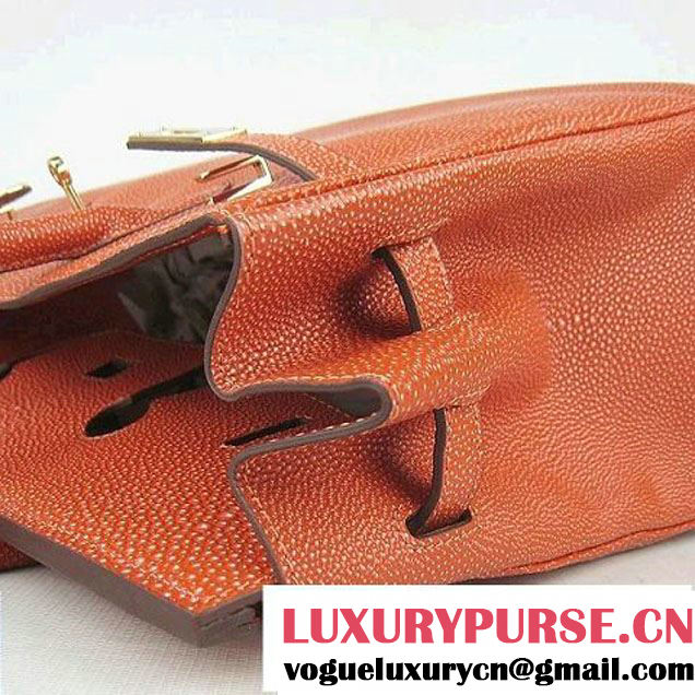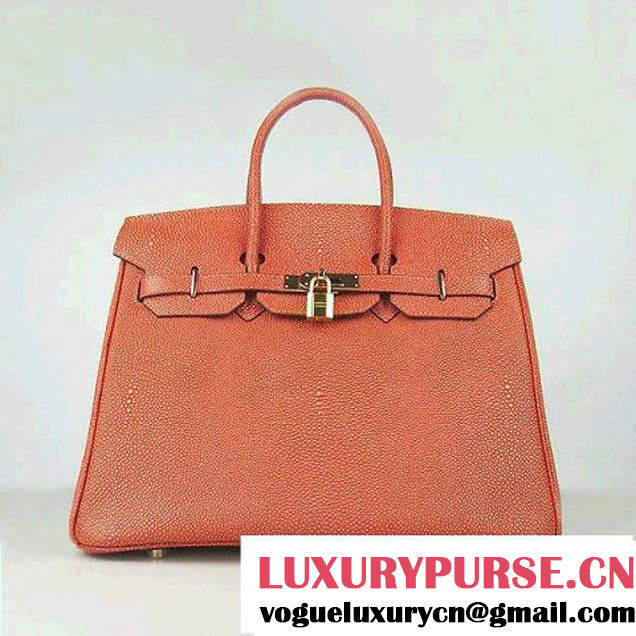 / Hermes Birkin 35cm Pearl Veins Leather Bag Dark Orange 6089 Gold Hardware