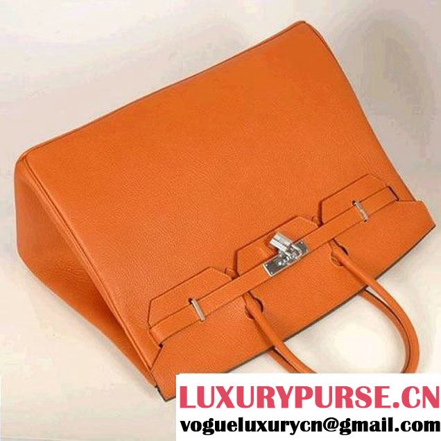 Hermes Birkin 40CM Togo Leather Tote Bag H40 Orange Silver