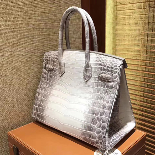 Hermes Birkin Bag 30cm Shiny Niloticus Crocodile Skin Bag Handstitched Palladium Hardware Himalayan