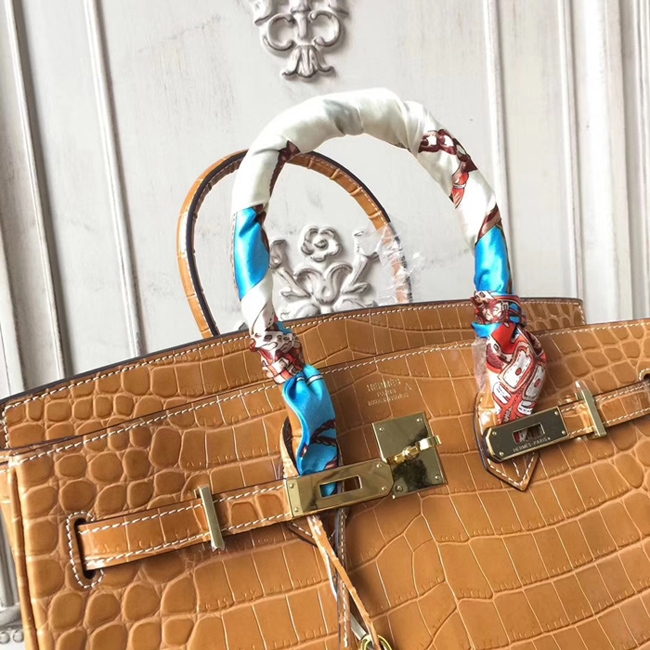 Hermes Birkin Bag 35cm Shiny Niloticus Crocodile Skin Bag Handstitched Palladium Hardware Beige