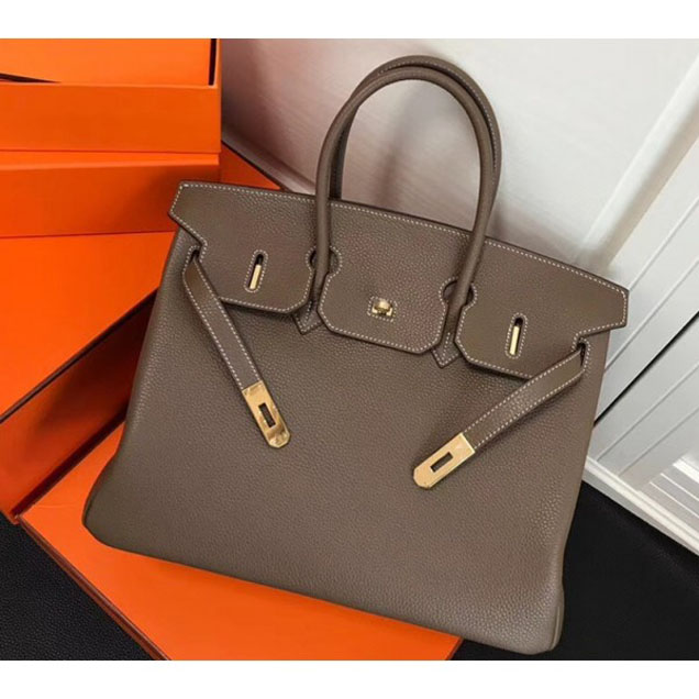 / Hermes Clemence Leather Birkin 35cm Bag Etoupe with golden Hardware