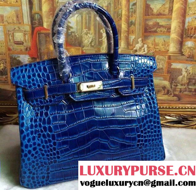 Hermes Egee 25cm Clutch Sapphire Blue Imported Swift Leather Golden Metal