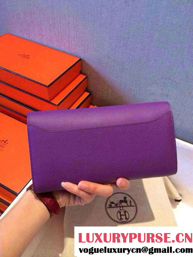Hermes Epsom Calfskin Constance Long Wallet Clutch Bag Purple 2014