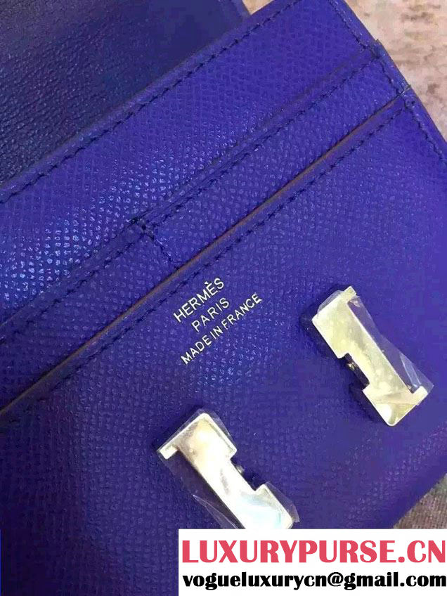 Hermes Epsom Calfskin Constance Long Wallet Clutch Bag Blue 2014