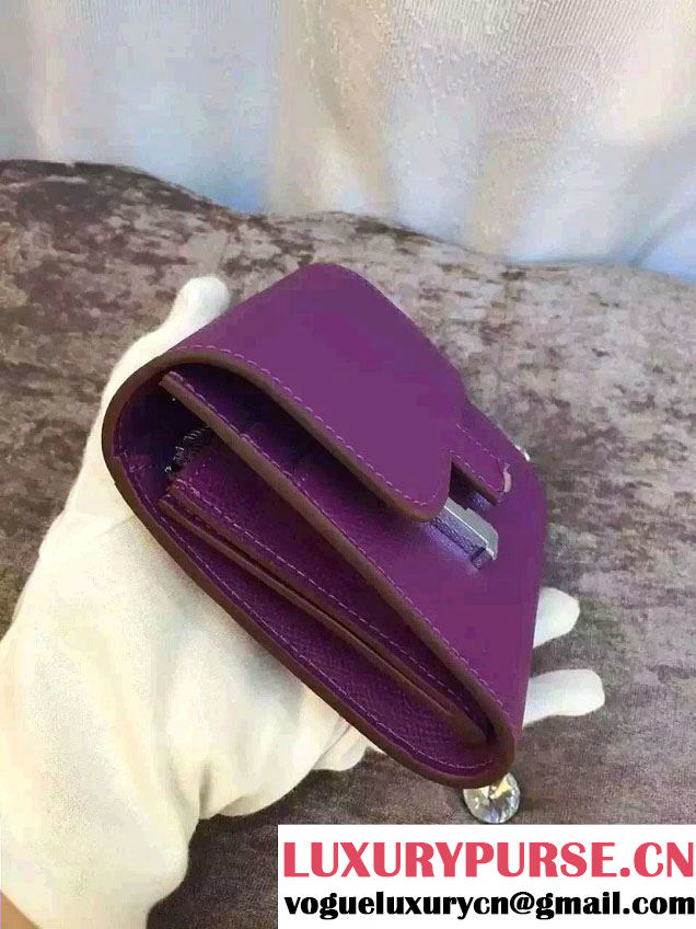 / Hermes Epsom Leather Constance Short Wallet Purple