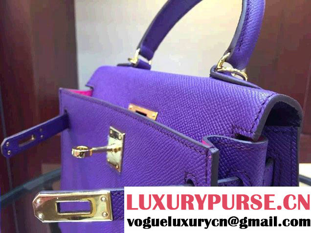 Hermes Epsom Leather Kelly 20cm Mini Bag Purple 2016