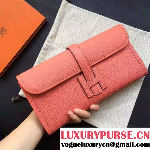 Hermes Jige Elan 29 Clutch Bag in Original Epsom Leather Lobster Pink