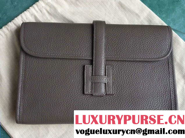 Hermes Jige PM Clutch Bag in Original Togo Leather Etoupe