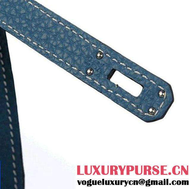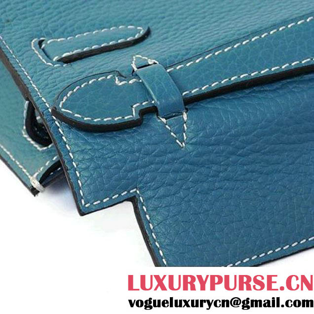 / Hermes Kelly 22cm Clemence Leather Blue
