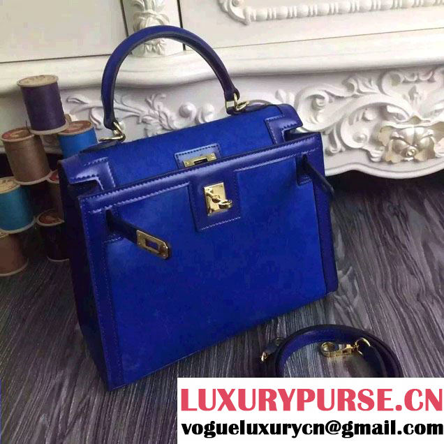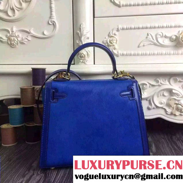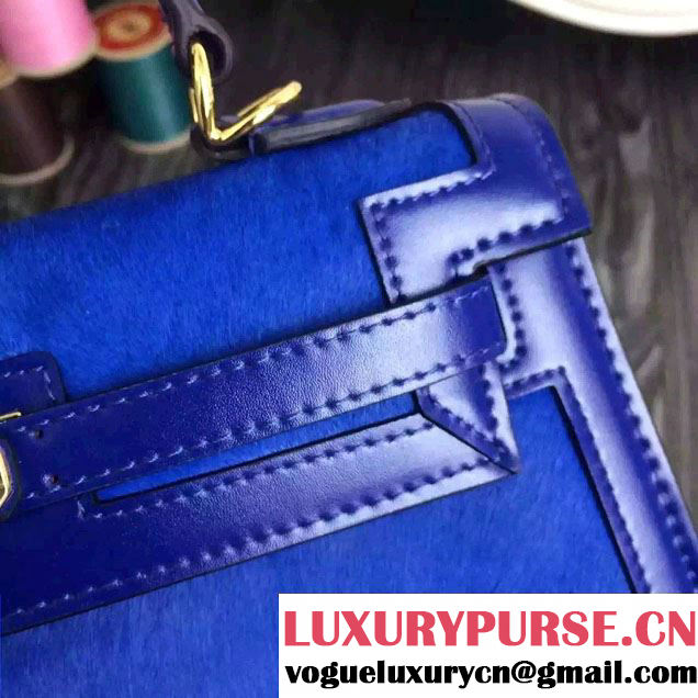 Hermes Kelly 25/28 Pony Hair And Box Leather Bag Blue 2015/2016