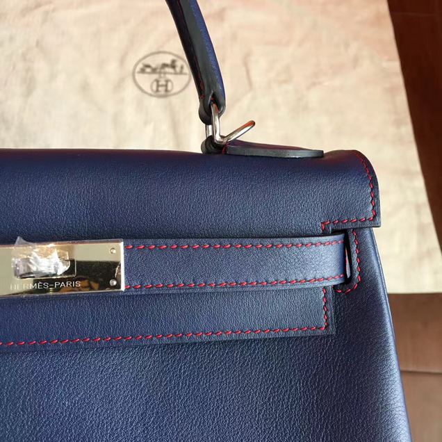 / Hermes Kelly 28cm Bag Sapphire Swif Leather