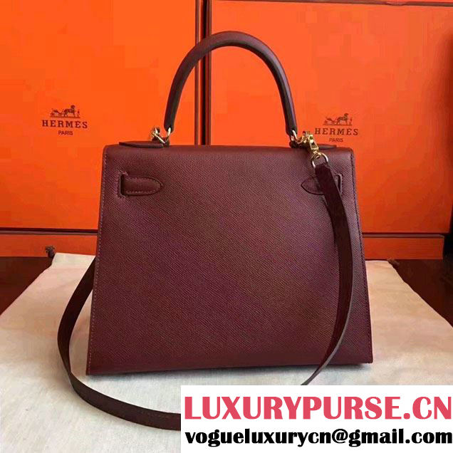Hermes Kelly 28CM/32CM Bag In Original Epsom Leather With Gold/Silver Hardware Burgundy