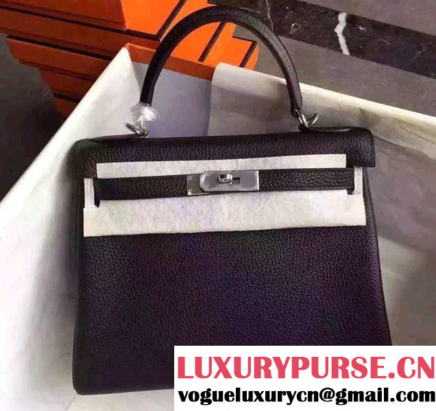 / Hermes Kelly 28cm/32cm Bag in Original Togo Leather Black/Silver