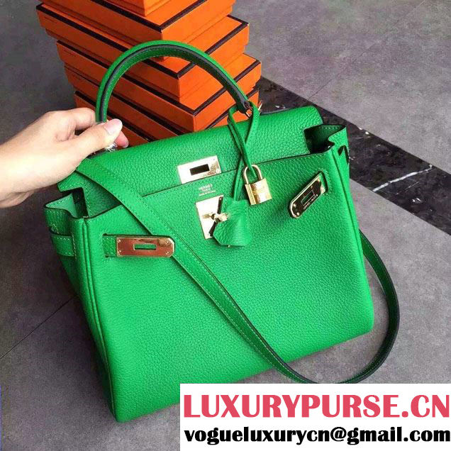 / Hermes Kelly 28cm/32cm Bag in Original Togo Leather Light Green
