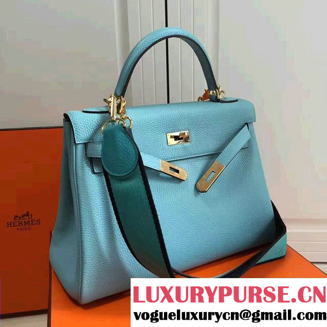Hermes Kelly 32/28 Togo Leather With Amazon Strap Bag Light Blue 2016