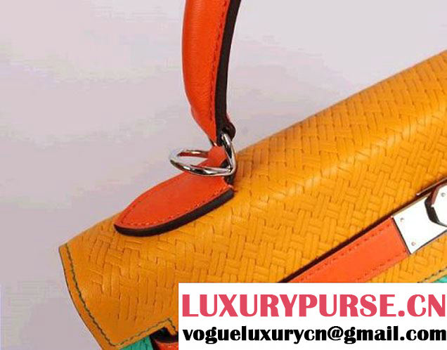 / Hermes Kelly 32cm Top Handle Bag Green&Yellow Woven Leather Silver