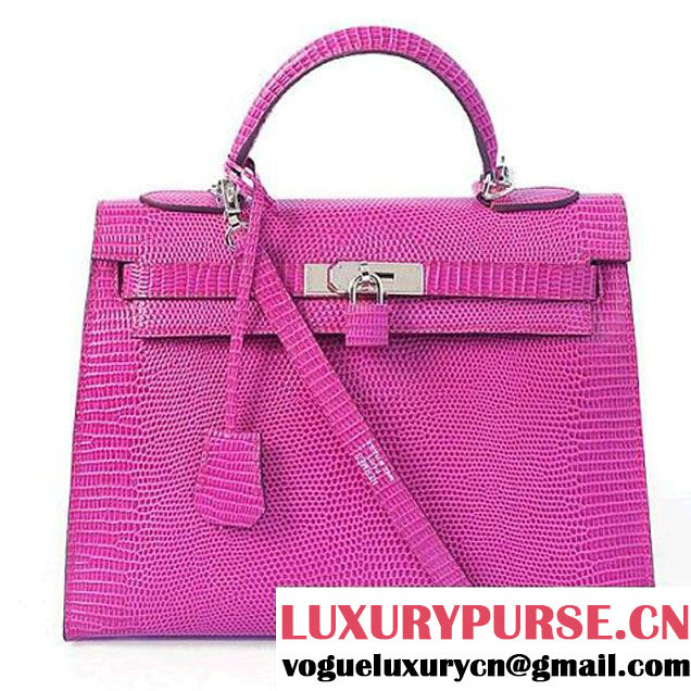Hermes Kelly 32cm Top Handle Bag Peach Lizard Leather Silver