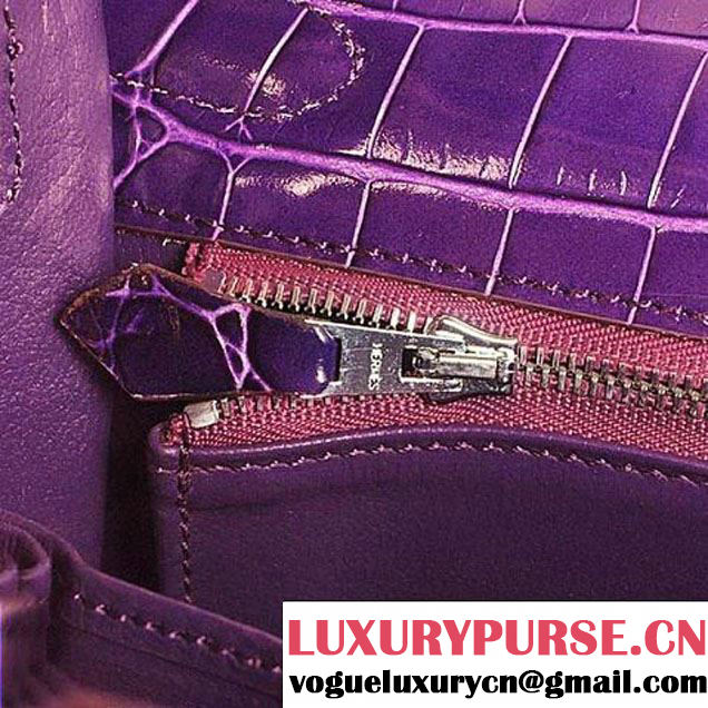Hermes Kelly 32cm Top Handle Bag Purple Croco Leather Silver
