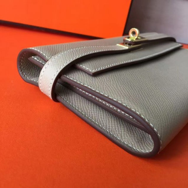 Hermes Kelly Wallet Epsom Leather Handstitched Gold Hardware Spring/Summer 2017 Collection, Pearl Grey