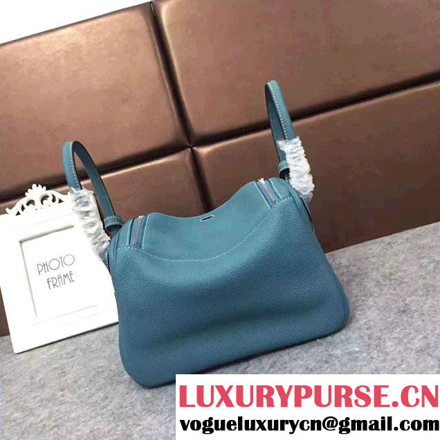 / Hermes Lindy 26/30 Bag In Original Togo Leather Gold/Sliver Hardware Ocean Blue