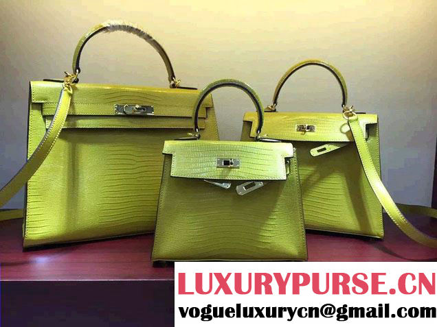 Hermes Lizard Pattern Kelly 20/25/32 Bag Yellow 2016