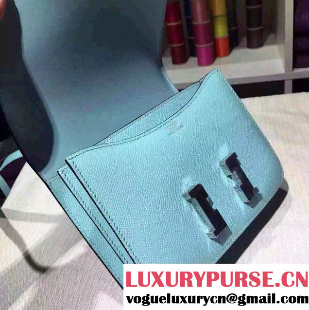 / Hermes Original Epsom Leather Constance 18cm/23cm Bag Sky Blue/Silver