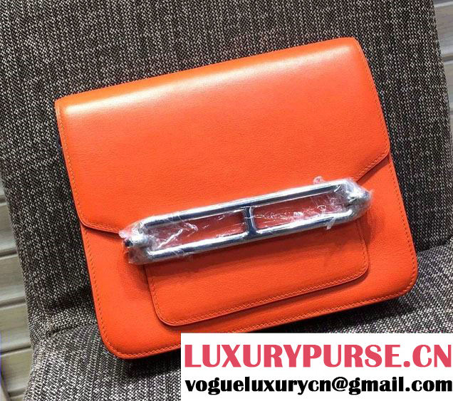 The Hermes Roulis features a flap front with a chain buckle detail. It is a mini bag with an