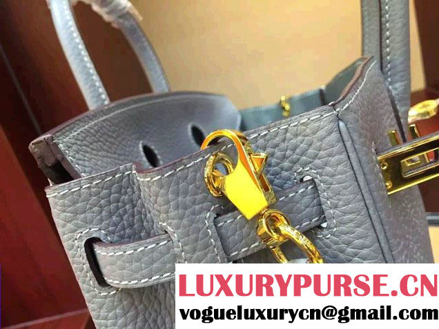 Hermes Mini Birkin 25cm Bag in Original Togo Leather Bag Light Blue/Gray