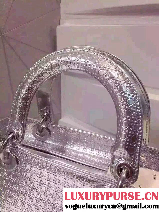Lady Dior Bag in Perforated Metallic Calfskin Silver 2015