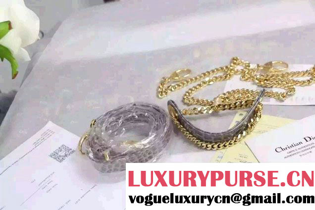 / Lady Dior Crocodile Pattern Mini Bag Gray With Gold Hardware 2015