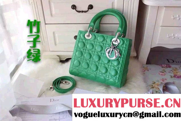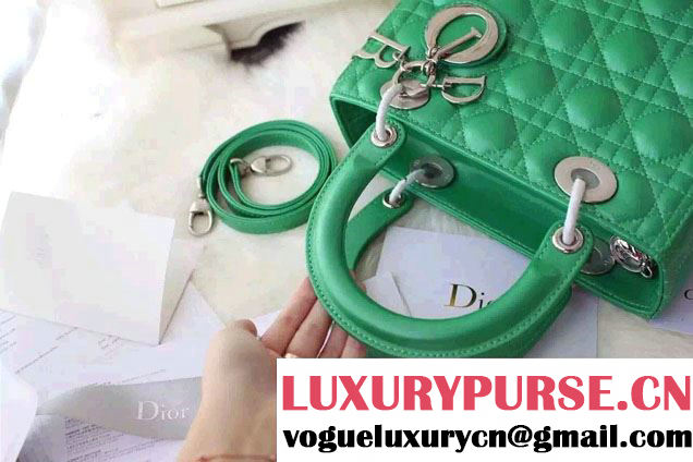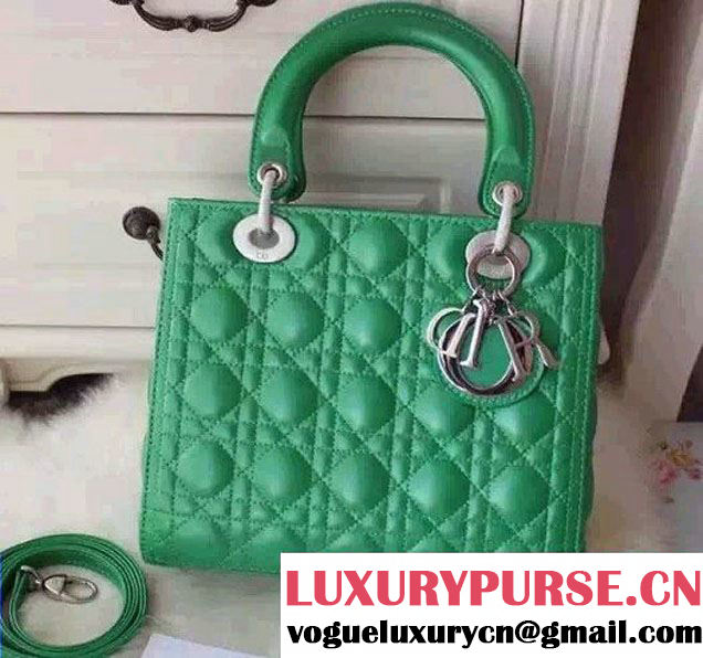 Lady Dior Medium Bag in Sheepsin Leather Green With Silver Hardware
