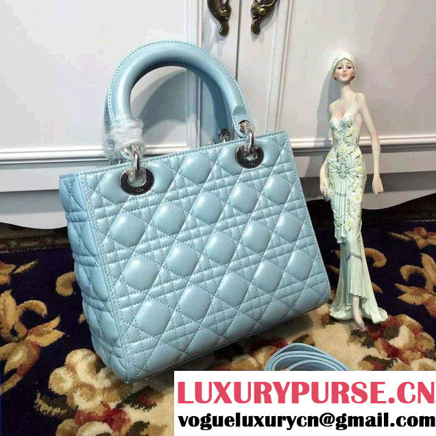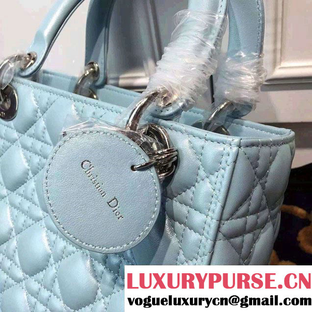 Lady Dior Medium Bag in Sheepsin Leather Sky Blue With Silver Hardware